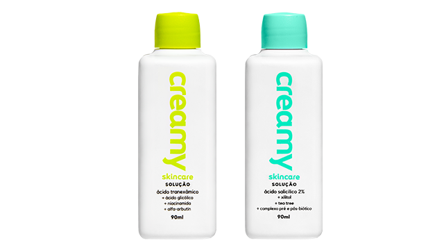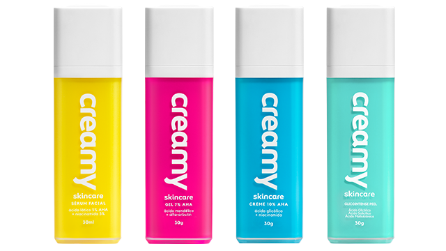 Os ácidos da Creamy são AHA (alfa-hidroxi-ácidos), derivados de frutas e que agem fazendo uma esfoliação química na pele, desde a mais suave até a mais intensa.